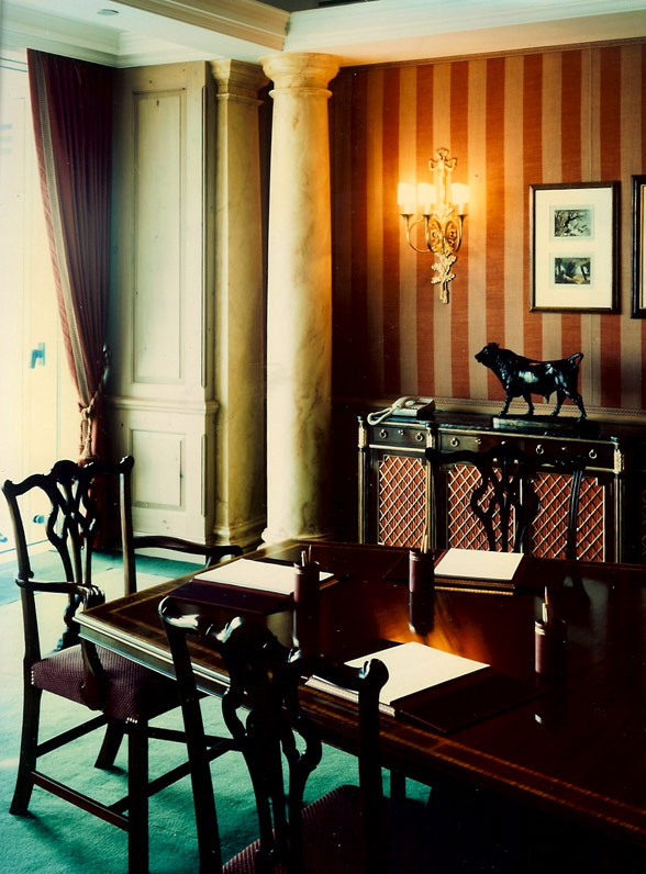 Full fit out of the 10th floor corporate area of a City bank in a traditional English style within a newly constructed fully glazed office building.